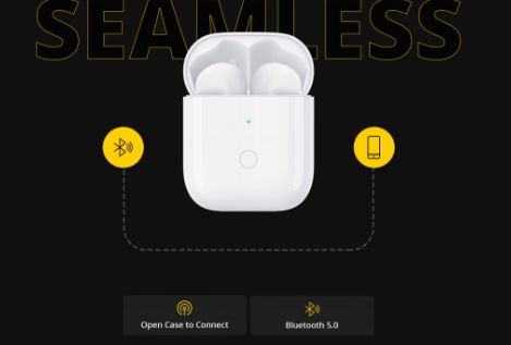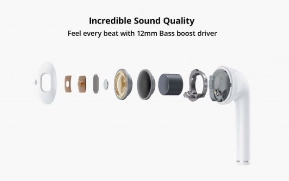 리얼미 버즈에어는 블루투스 5.0을 지원하고 있으며, 12mm 드라이버로 베이스 강화가 좋은 이어폰이라고 합니다. 이어폰 터치 시 음악 제어 및 구글 어시스턴트, 전화받기 등 간단한 기능을 사용할 수 있습니다.