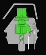 녹축은 50g의 키압을 갖고 있으며, 특유의 경쾌한 소리 그리고 명확한 클릭감과 타건 할 때의 즐거움을 가장 많이 받을 수 있습니다ㅎ 계속 눌러보고 싶게 만드는 스위치입니다. 청축과 매우 유사한 느낌을 받을수 있으며, 청축과는 아예 같은 느낌은 아니라고 합니다. 또한 체리 청축보다 약간은 더 가벼운 키압을 느낄 수 있습니다.