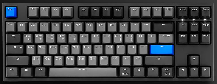 같은 제품으로는 Ducky ONE 2 SEAMLESS SKYLINE PBT 이중사출 한글 제품은 우측 숫자 버튼의 키가 같이 포함되어있으며, 가격도 동일합니다. 소비자의 선택폭을 넓혔다고 볼수있겠네요~